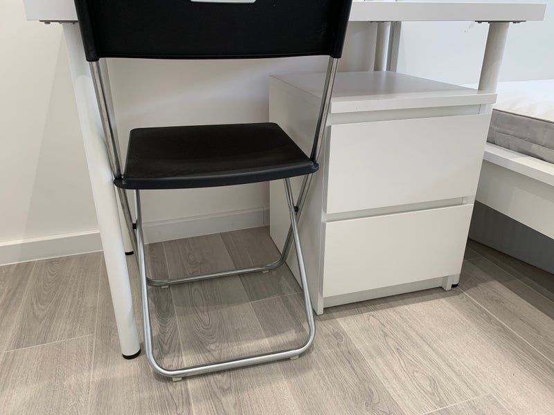 Room comes with double bed, mattress, underbed storages (x4), two wardrobes, bedside tables, desk, chair, sofa, coffee table, fridge/freezer