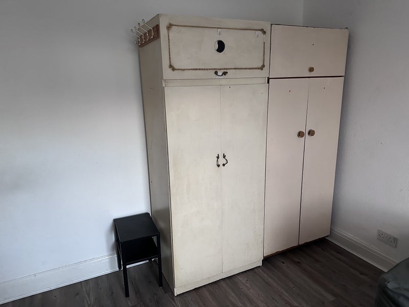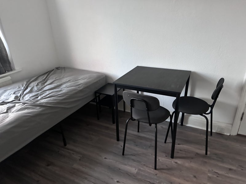 The available room was partially refurbished in 2023. It received a new grey hard floor and new white paint, a new bed and mattress. It will now receive a brand new table and two new chairs. The room also has two cupboards.