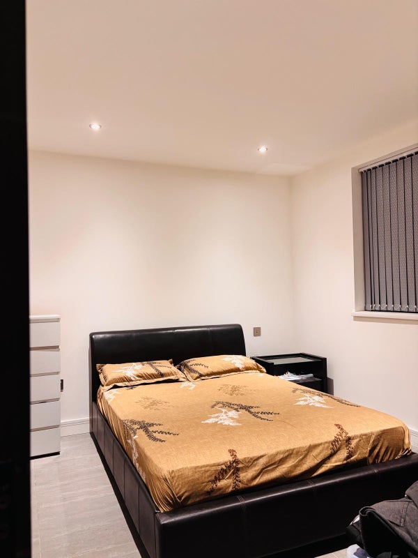 Ground floor rooms available (private bathroom) in a new built property very close to Hounslow Central tube station (3 minutes), temple (1 minute), park (2 minutes), ASDA (5 minutes), schools (3 minutes), bus stops (1 minute), High Street (5 minutes), furnished with bed, table, chair, bedside table, chest of drawers, underfloor heating, en-suite, parking, and garden.
