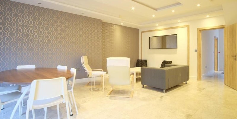The flat has 8 bedrooms and 4 bathrooms(2 ensuites)