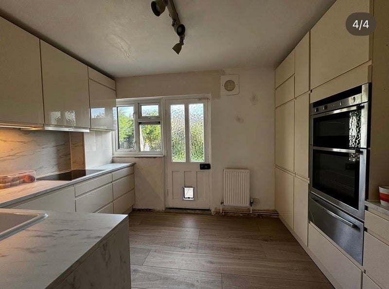 This is a 3 bedroom ground floor flat, with a large garden, garage and an external office, newly refurbished. Looking for professionals.
