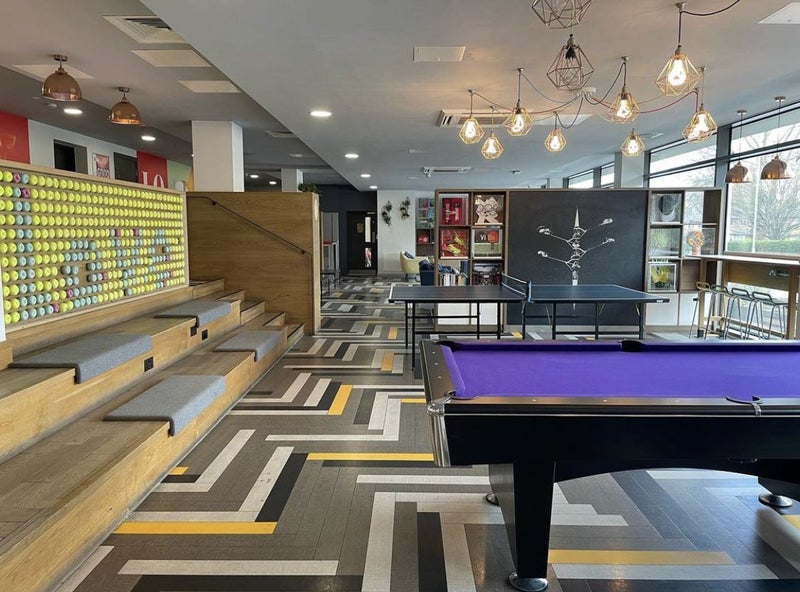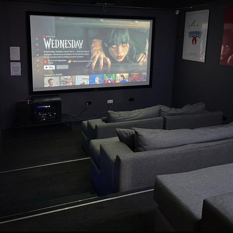 Has a few communal areas including a movie room, a gym and a lounge area.