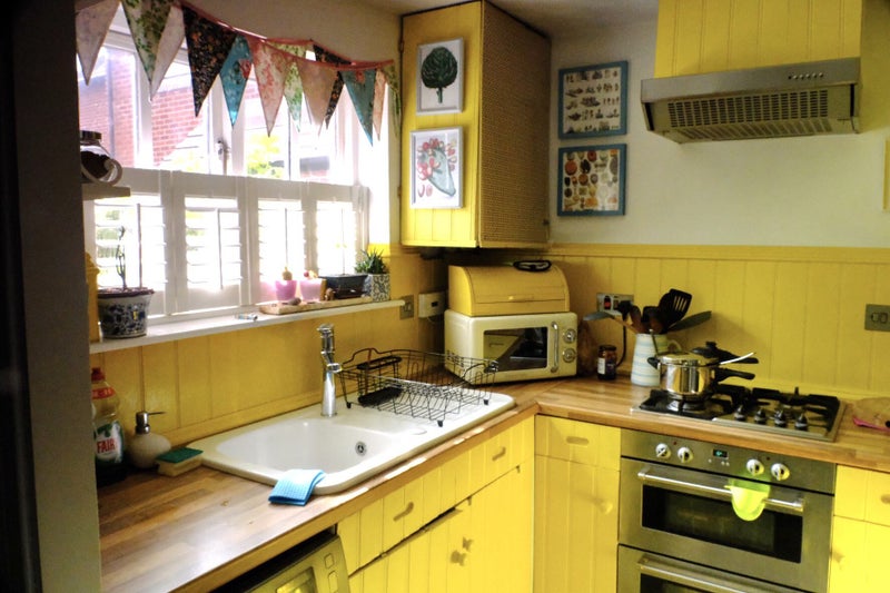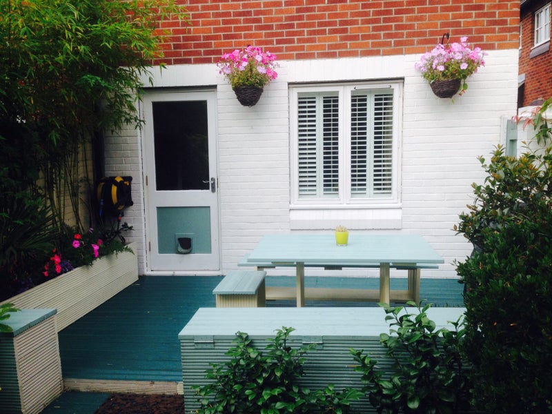 To share modern bathroom, kitchen, living room and garden with myself, a friendly female professional, late 40s.