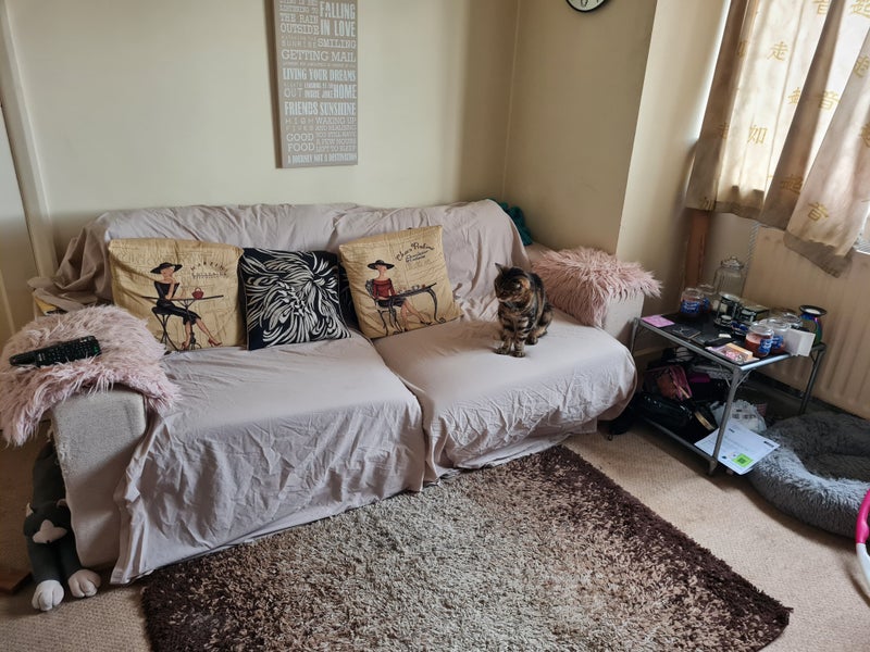 Bedroom has a double bed, wardrobe and dressing table. Useful to have your own TV. No other furniture please.