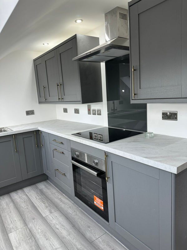 Large double bedroom and a fully equipped brand new kitchen and a brand new bathroom