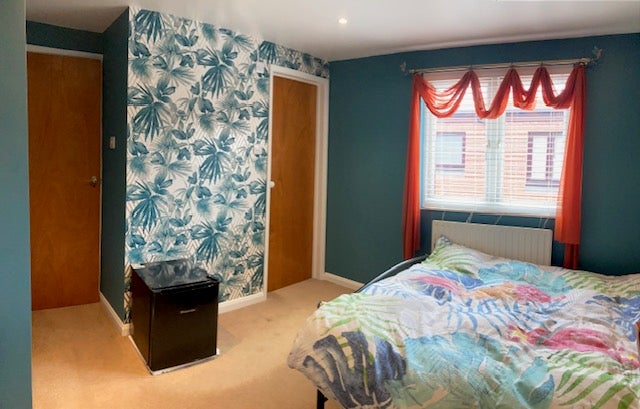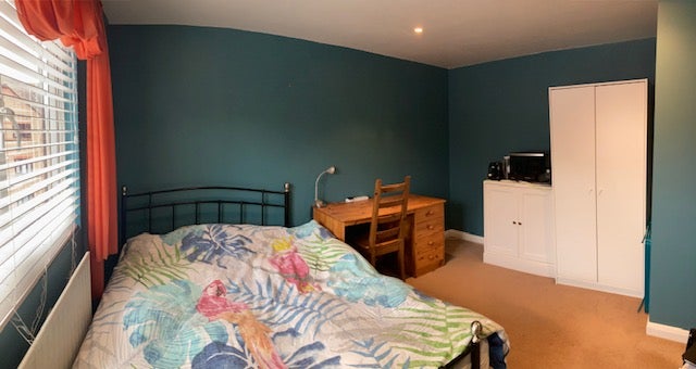 The room is spacious and furnished with a double bed, desk, chair, drawers and wardrobe, making it ideal for both relaxing and working from home. The private en-suite bathroom offers added privacy and convenience.