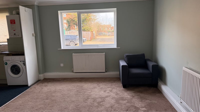 Buses less than 1 minute walk . Northolt station 3 stops. It’s has washing machine, fridge already installed.