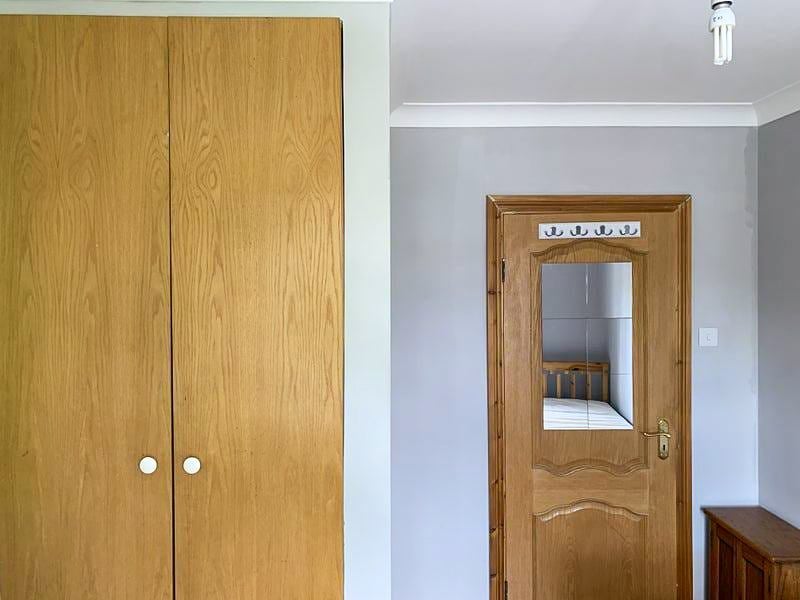 • Single bedroom (for single occupancy) with wardrobe, bedside unit, and chest of drawers.