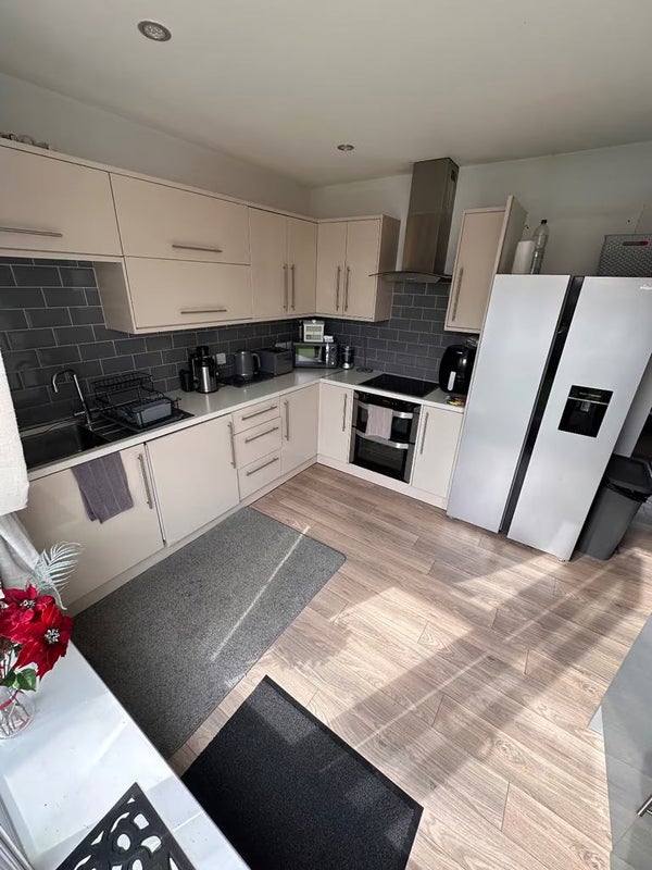 Fully Equipped Kitchen with large American fridge-freezer, dishwasher, and washing machine