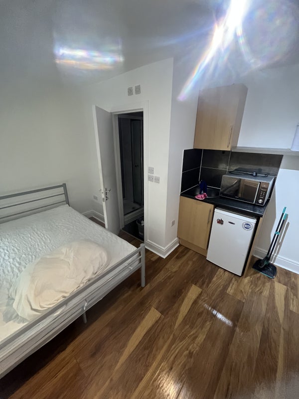 A bright and spacious self-contained double bedroom studio freshly painted available in a friendly house share in Bromley, just a short walk from St Mary Cray Station (direct trains to London Victoria, Blackfriars, and more)