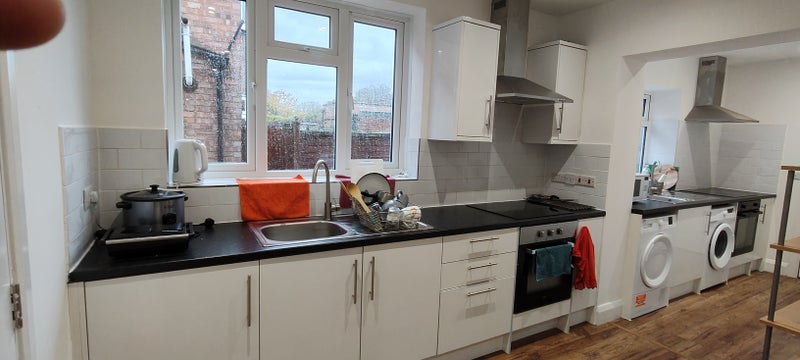 One double bedroom to rent in a clean and spacious shared house. It comes with bed, mattress, sofa, and wardrobe. Newly refurbished bathroom and kitchen to share.