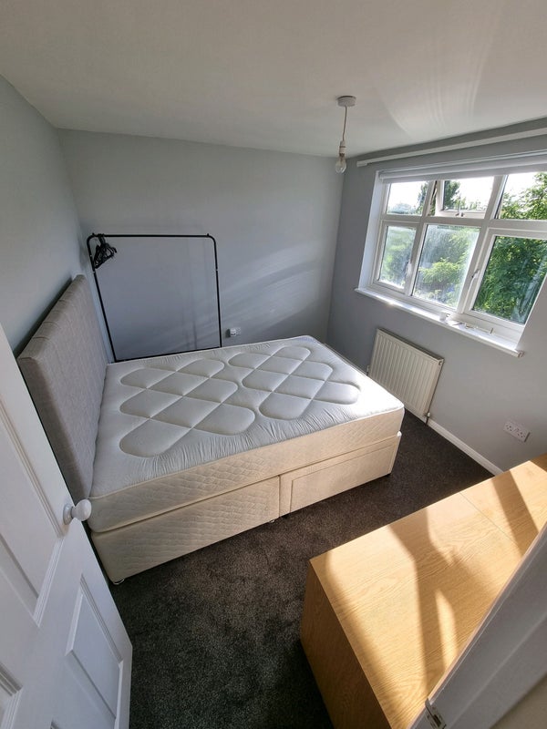 A double room in a quiet cul-de-sac. The room overlooks the garden. Contains a double bed, clothes rail and drawers. I have two cats, one very friendly, the other quite timid, I do not allow the cats upstairs.