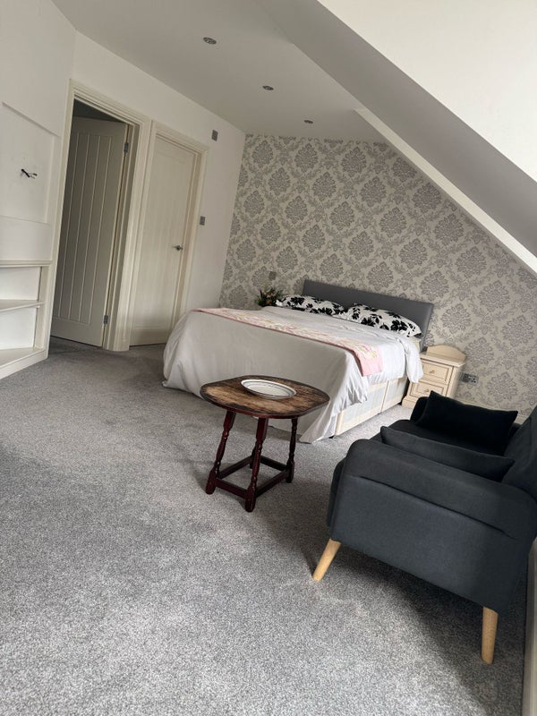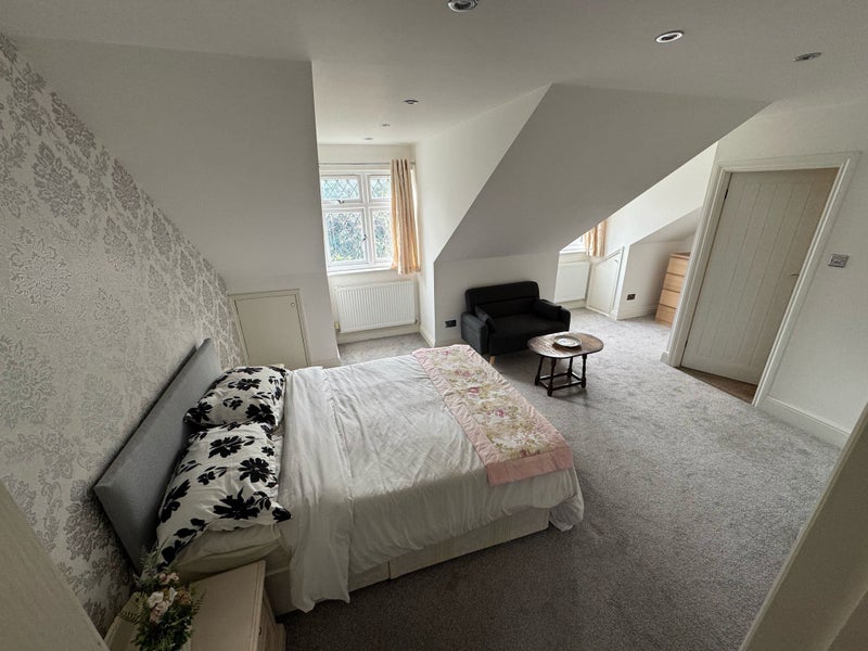 Hi we have a beautiful En-suite master-room available in our home, the room boasts plenty natural light, double windows, and plenty storage space, the room also has an extra studio office room within the room ( great for those working from home )