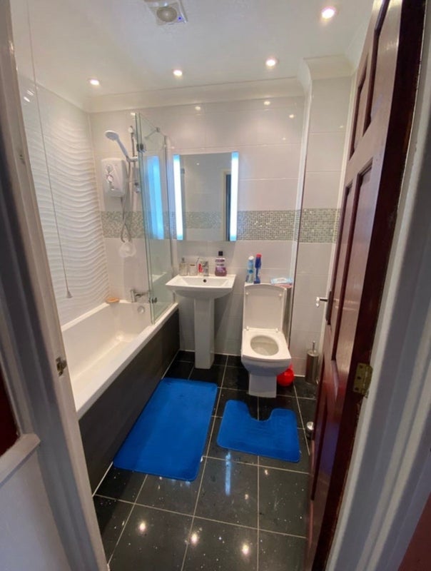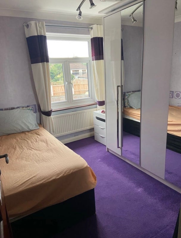 The two rooms being rented out for two working professionals. A spacious double to sleep in with ottoman storage and cupboards including a mini fridge. Another single room, single bed with a king size wardrobe and own fridge freezer to use. Ensuite right near the room with electric hot shower and bathroom! Kitchen facility downstairs with washing machine. Free parking available and garage.