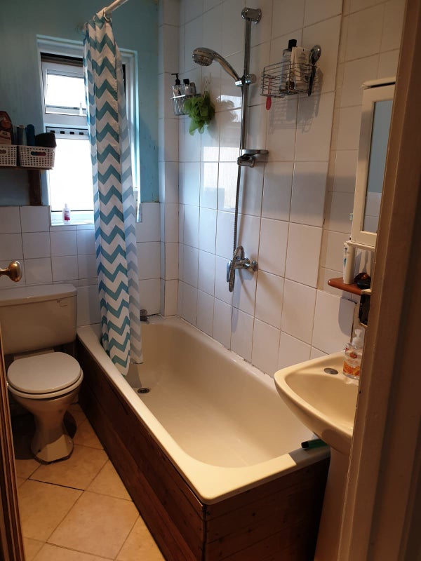 The property has one bathroom (with a bath), large living room and large kitchen with some new appliances.