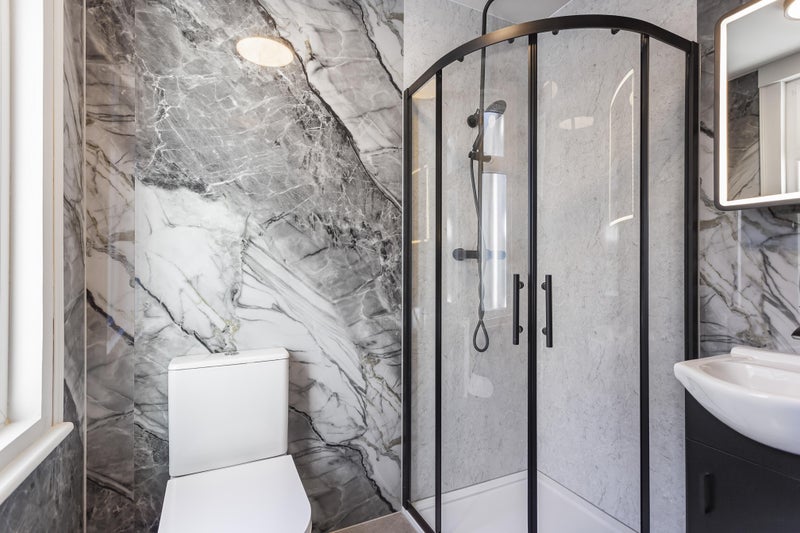 - En-suite with a shaver socket, LED mirrors - wardrobe, chest of drawers, desk, chair, bedside table