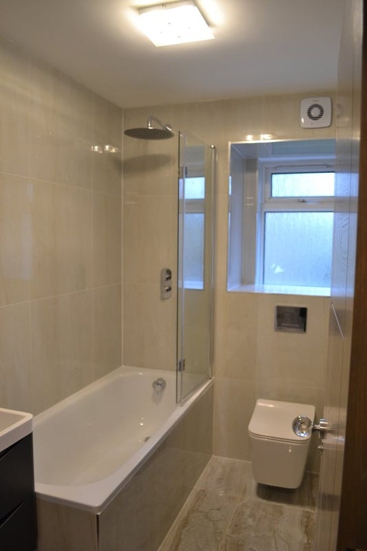 There are two bathrooms, one with bathtub, fully equipped kitchen, separate living / dining room with built in TV and a little south facing balcony. There is a lovely communal garden, secure bike storage and allocated car space.