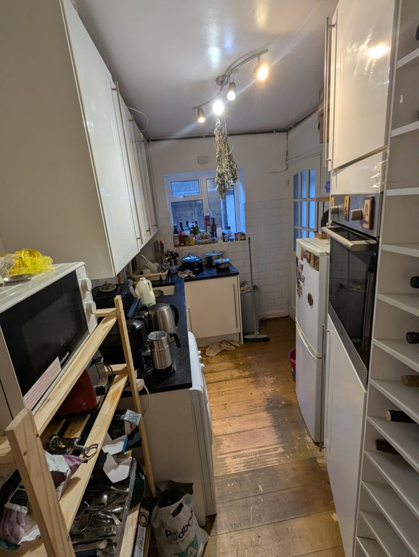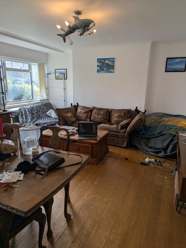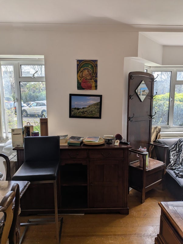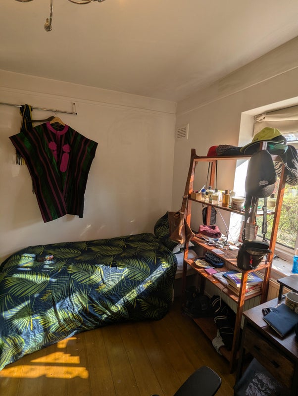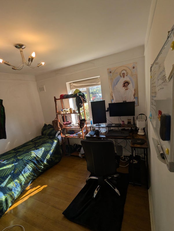 The room comes fully furnished with mattress, shelf, desk and chair, wardrobe, and a vintage oak wood bedside table. It's a 15-20 minute walk to the Richmond Station, 5 minutes to nearest Sainsbury, and 10 minutes to the town center.