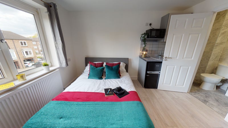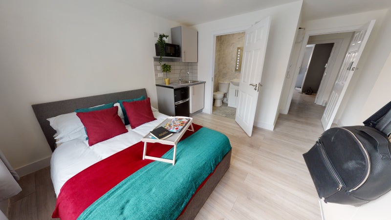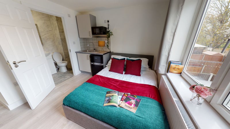 * Each studio is Bright with en-suite Shower Rooms, with kitchenettes, (no cooking facilities), built in floor-to-ceiling wardrobes and built in desks.
