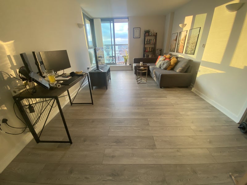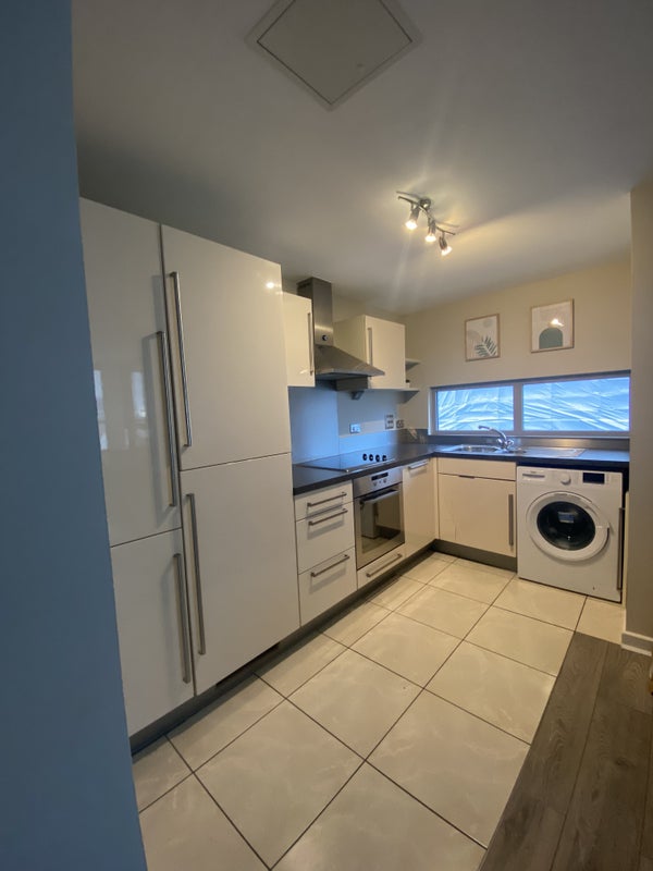 The flat has one bathroom with a bath, storage space, wrap around balcony overlooking the London skyline. Open plan lounge and kitchen with newly installed dishwasher and washing machine. The flat will also come with a corner sofa, wardrobes and a bed.