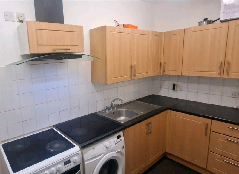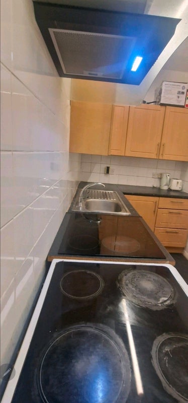 Both the ensuite bedroom and the fully equipped kitchen are located on the ground floor. The kitchen features a separate cooker, oven, grill, extractor hood, sink, worktops on both sides, and ample cupboard storage.