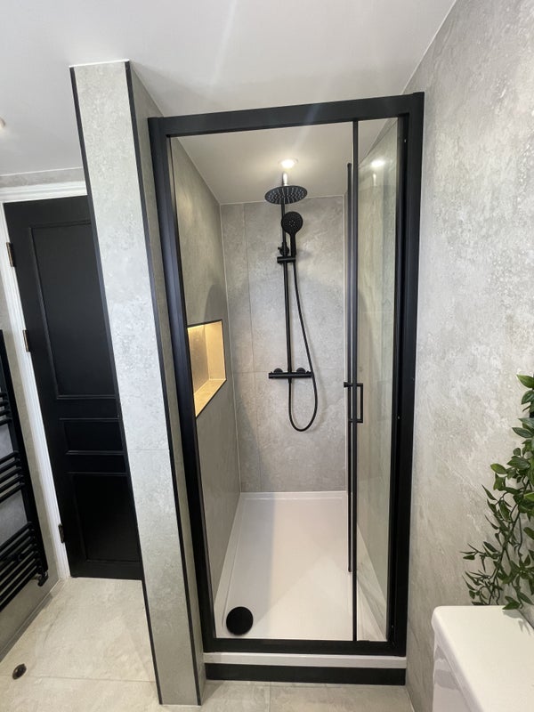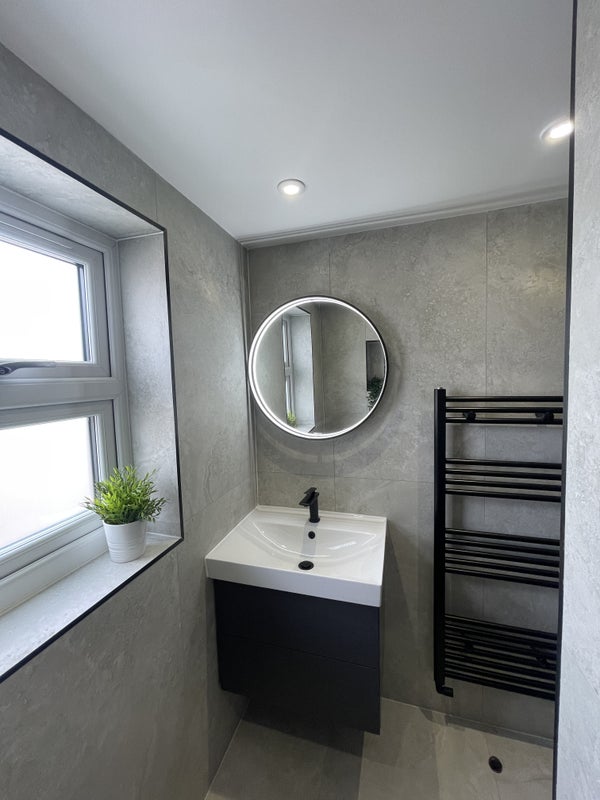 - Modern bathroom and shower next door to the bedroom.