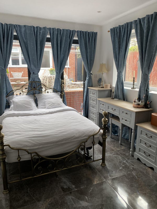 -A spacious double bedroom with patio doors leading directly to a private garden