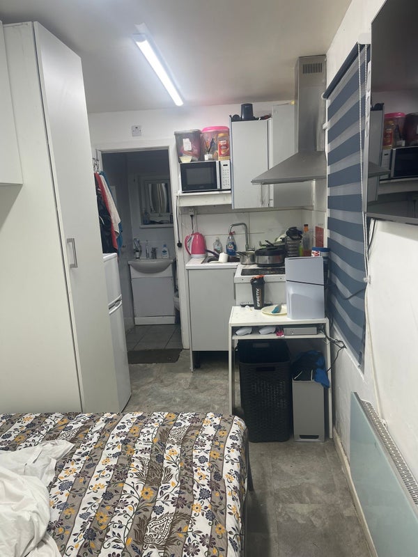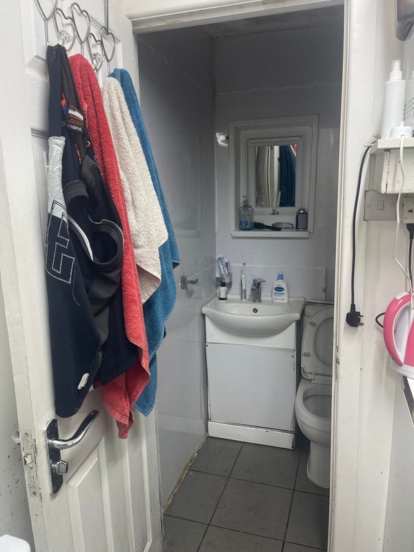 A fully furnished room with double bed, fitted wardrobe and a bathroom with separate entrance situated on the ground floor.