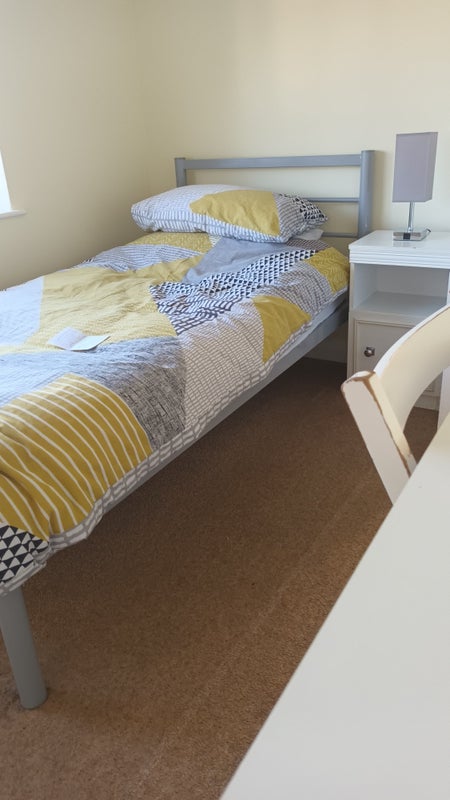 The bedroom is at the front of the house, overlooking a quite square as the road is a cul-de-sac. The road is very quiet, with nice neighbours.