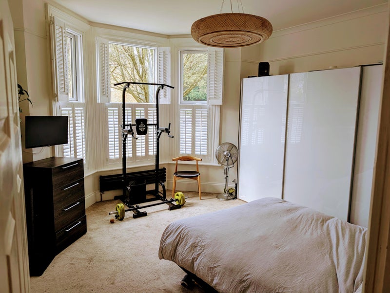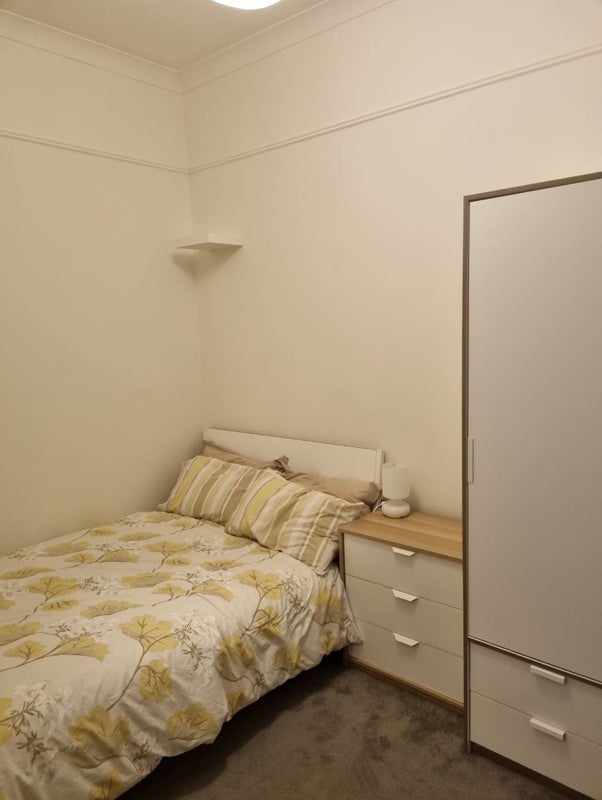 The room has a double bed, wardrobe, chest of drawers, not much of a view, as it's looking into a alley with brick wall. Bathroom with bath and overhead shower right by your door, I have an en suite so there will be no bathroom conflict.