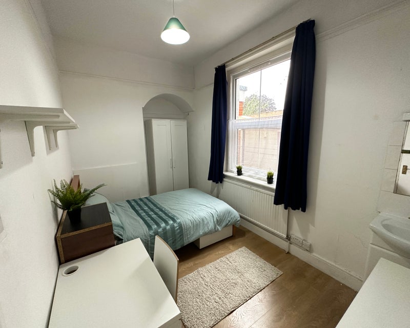 • Six good-sized double bedrooms, each part-furnished with a bed & mattress, desk, chair wardrobe and chest of drawers and bedside table