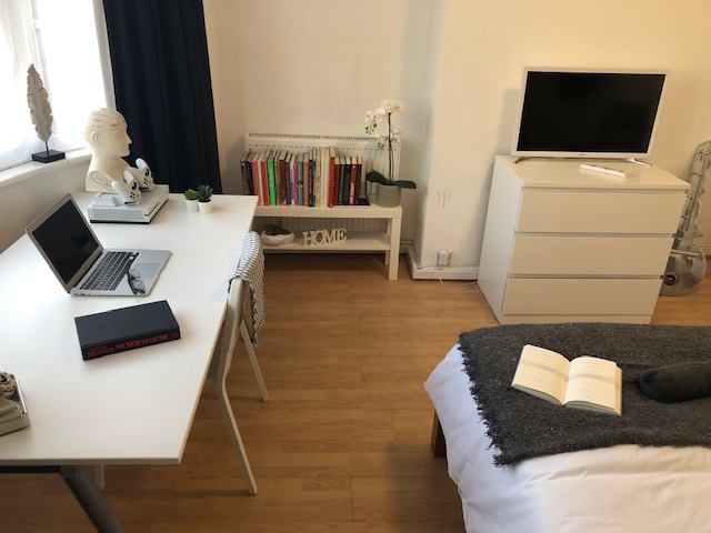 Each room has wardrobe, 4ft double bed, mattress, desk, chair and storage unit (soft furnishings and other staging items in pictures not included). Largest room has its own fridge/freezer - this is the room that has the video clip on the advert.