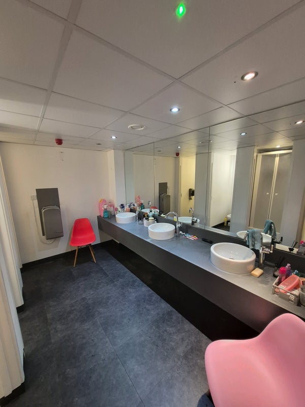 Large room with personal AC in converted office guardianship. Lots of communal spaces. 3 bathrooms. Sharing with a lot of film creatives. Unfurnished room.