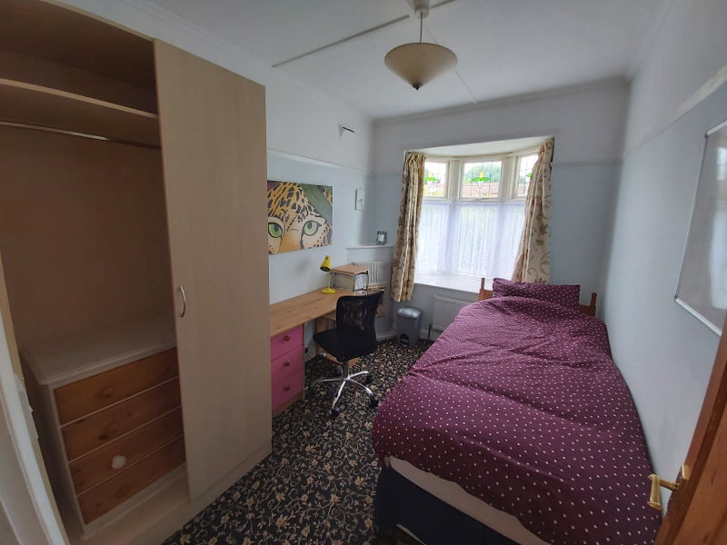 A lovely and bright single room with an attractive bay window. Fully fitted with a single bed, a wardrobe, drawers, desk and office chair.