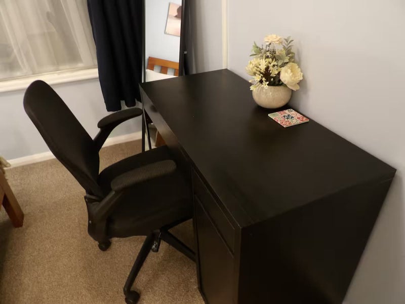 This is a well-presented, spacious double bedroom in a beautifully maintained Twickenham home. The room faces our lovely, fully-fenced private garden, a genuinely calming outlook that's hard to find at this price in London. It comes fully furnished with a comfortable double bed, fresh linens, a dedicated work desk ideal for remote work, wardrobe storage, and your own private en-suite toilet, giving you that extra layer of comfort and privacy that makes all the difference in a shared home.