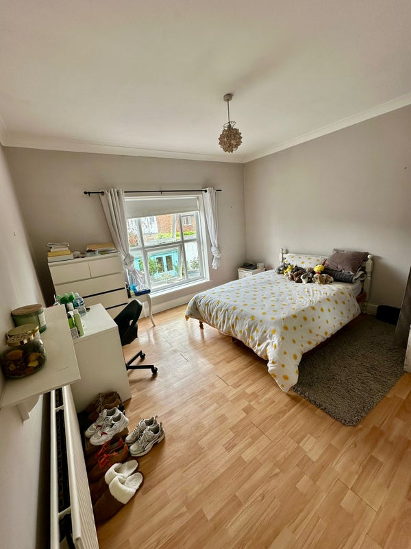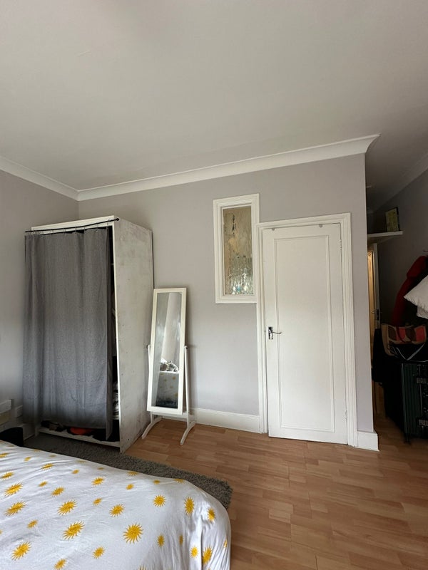 A large upstairs double room that’s south-facing, meaning it gets lots of natural sunlight throughout the day. The room is comfortable and spacious, with plenty of storage and a beautiful ornate Victorian fireplace that adds charm and character.