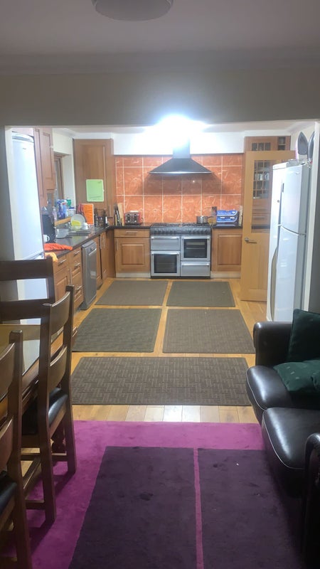 The house is modern, well maintained and clean with a large bathroom, fully fitted kitchen with 8 burner domestic range cooker with 2 ovens below, individual own fridge/freezer and a shared communal lounge/dining room.