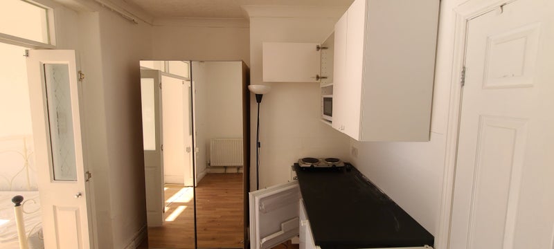 This room in an all females house share. The room comes furnished with a single bed that folds out into a double bed. There’s also a spacious wardrobe, small kitchen with a fridge freezer and microwave
