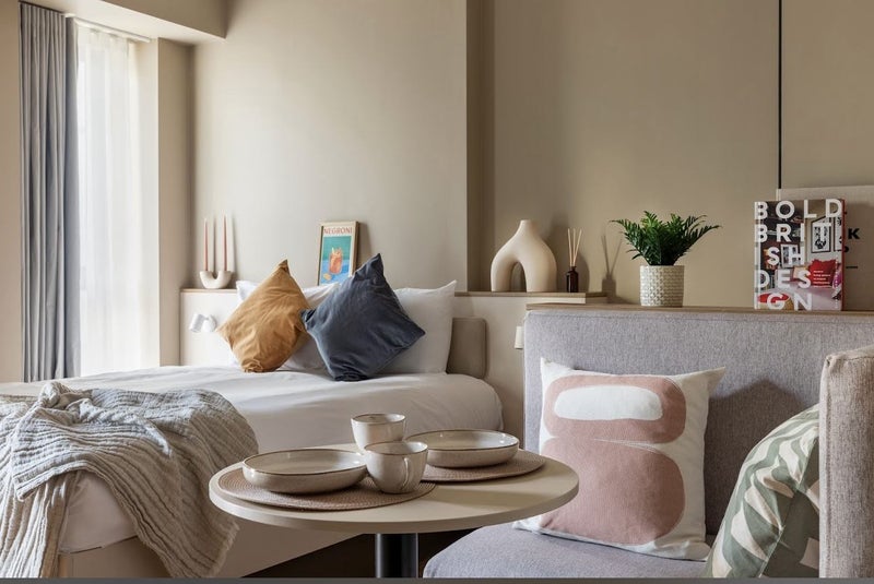 Studio available for rent from 18 August till 26 October with possibility of renewal. The studio is fully furnished with bed, sofa, table, tv, and kitchen appliances (including dishwasher). Wembley Ark is a serviced apartment building with various amenities including gym, workspace, cinema room, communal kitchen and living room, and laundry room. The rent covers all bills - including council tax.