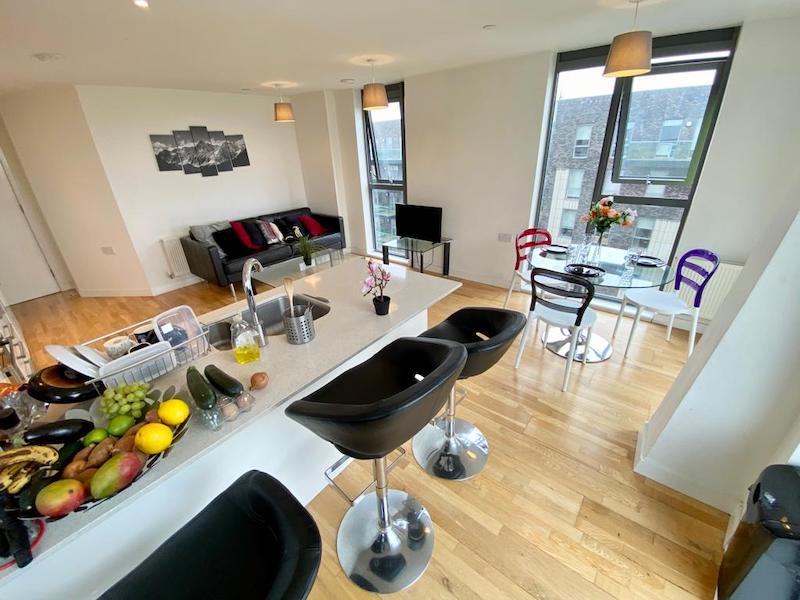 The flat includes a bright open-plan kitchen and living area, perfect for relaxing or working from home. The property is clean, quiet, and ideal for professionals looking for a comfortable and hassle-free living space.