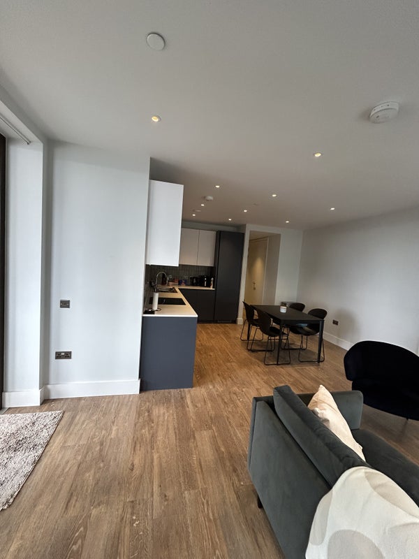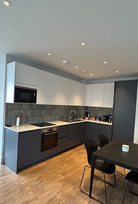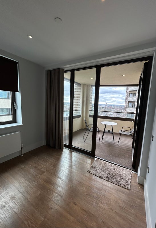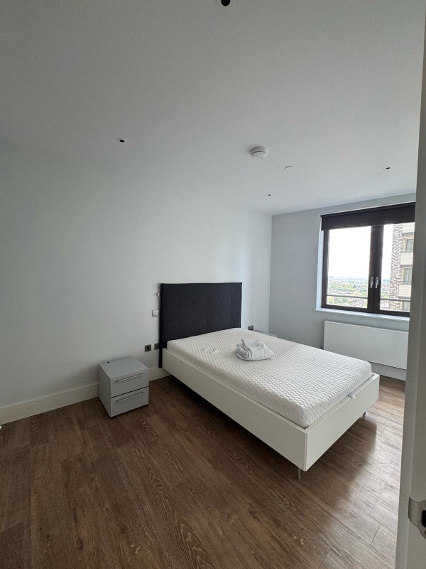 Spacious double room (the larger bedroom in the flat), fully furnished with bed, wardrobe, mattress, and storage space. Bright and modern with plenty of natural light.