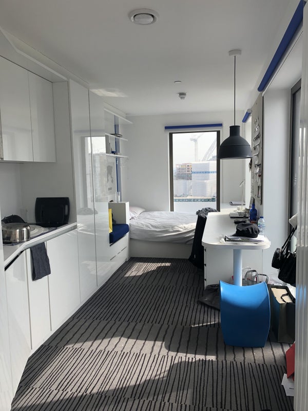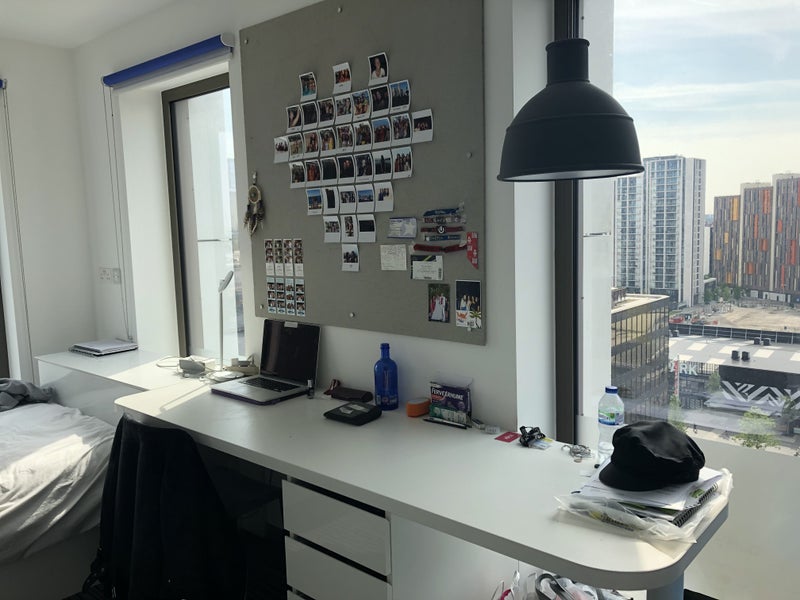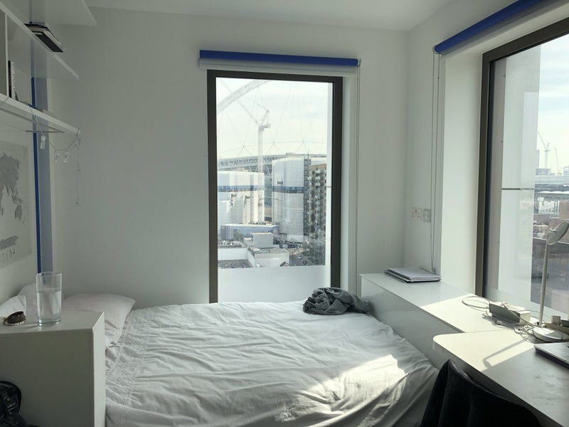 Amazing bright medium corner studio in Scape House Wembley. All the medium corner studios are sold out on the website. Good price, 267 per week instead of 273 pounds. There are 4 big windows, the bathroom is separated and the kitchen is really practical. You will find a lots of storage (chest of drawers, a big desk, a wardrobe, storage under the bed, and a lot more...) The view is really nice, since it is on the 15th floor ; you can see the stadium and the sunset during the evening. The reception is open 24/7 and the accommodation is really secured. Downstairs you will find some common rooms, common kitchen, a cinema room, a gym, but also a pool and more... There is also an outdoor space where you can stay with some friends sitting.
