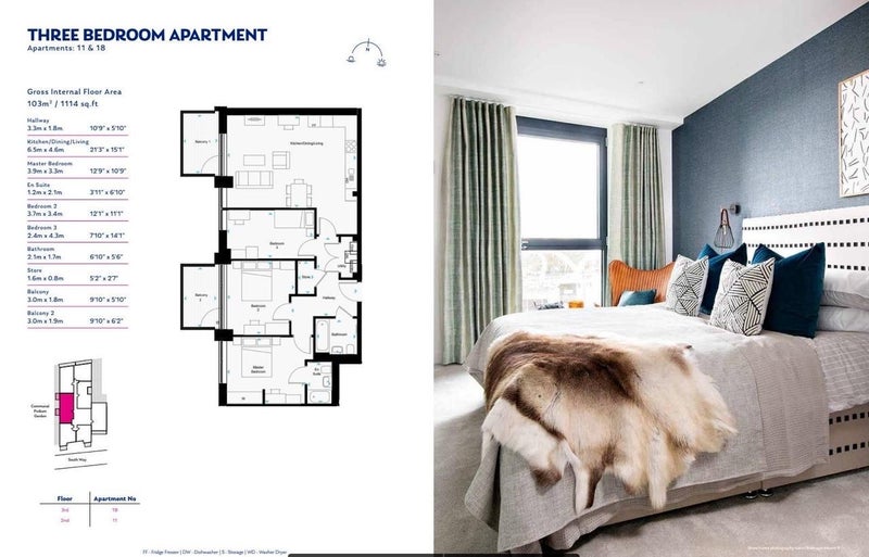 3 bedroom apartment with 2 bathrooms (one En-suite and one shared)