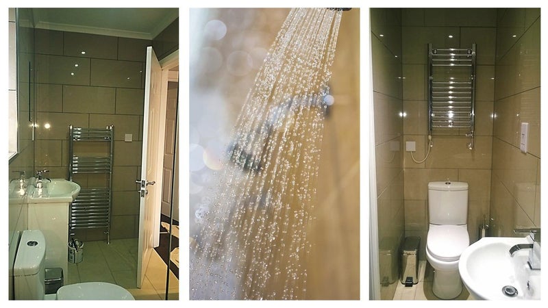 * Mains water pressure showers in fully tiled rooms with heated towel rails
