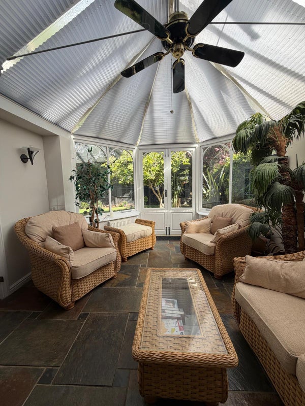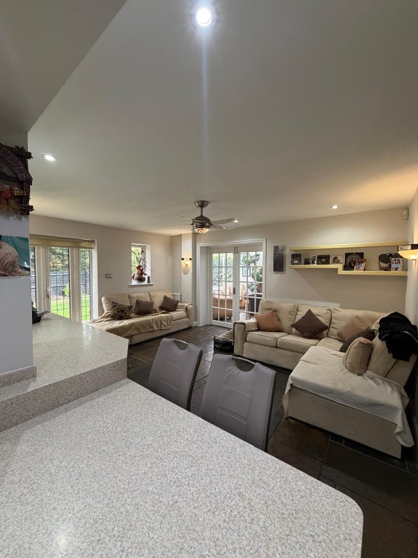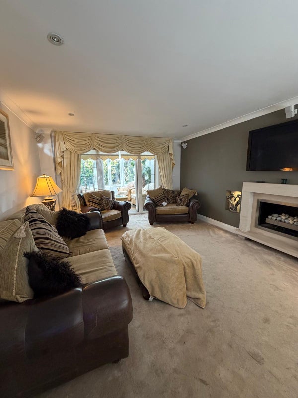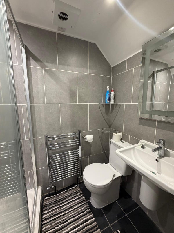 The room is offered furnished and benefits from its own private en-suite bathroom, providing comfort and privacy. The property itself is a substantial home, featuring three separate lounge areas, a large two-part kitchen, and well-kept communal spaces designed for comfortable shared living.