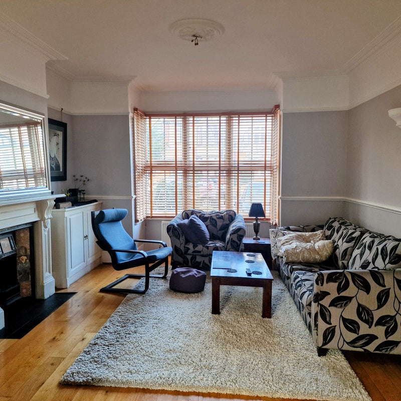 Your double bedroom overlooks the garden, and the main bathroom is also at the back of the house. My ensuite doesn't have a loo or a bath so the ones in the main bathroom are shared. There is also a loo downstairs.