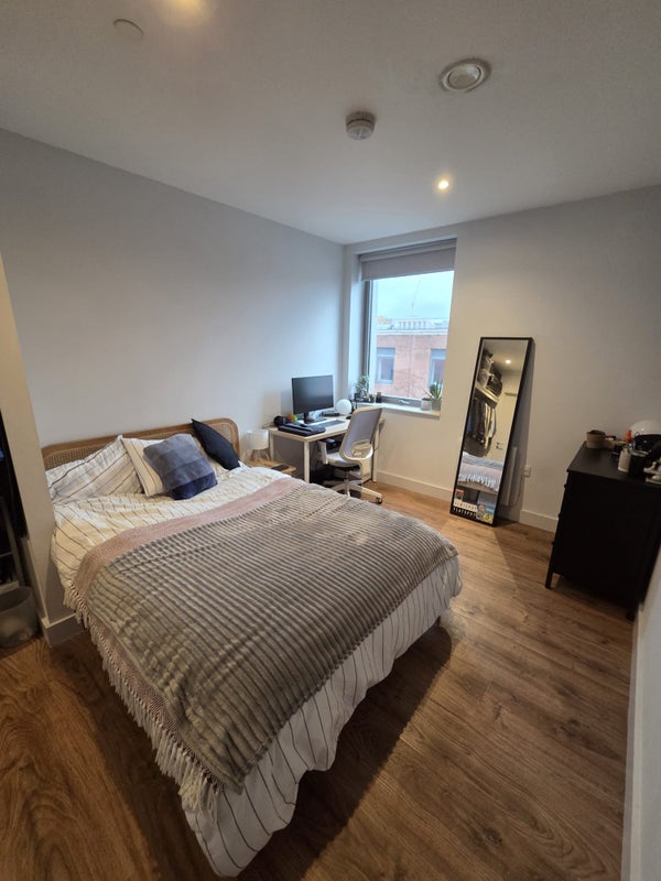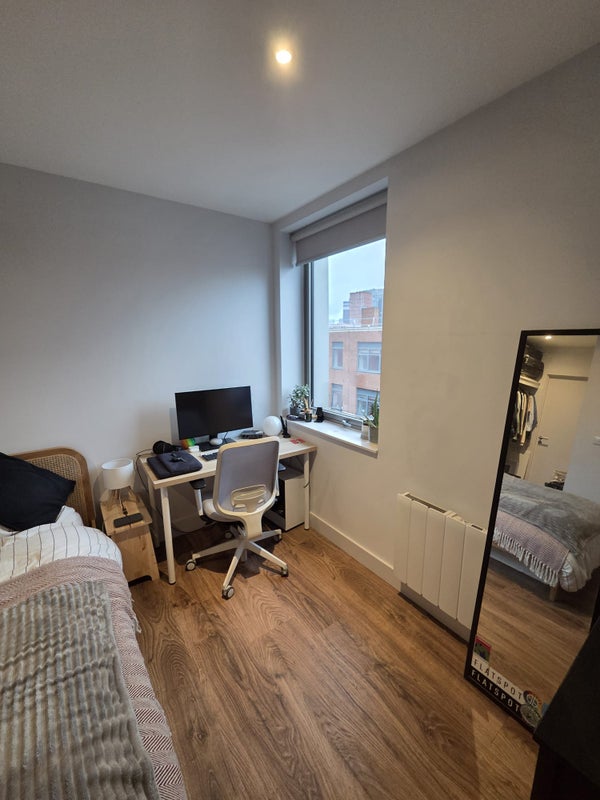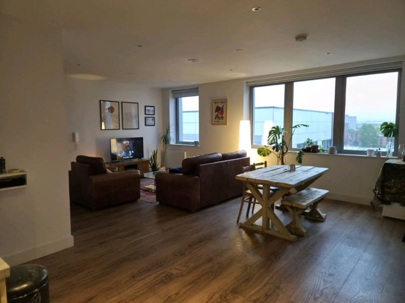 Our current housemate George is moving out to relocate to London, so we're looking for someone to take over his spacious double room in our top-floor corner flat in Sawmill Court, Ancoats.