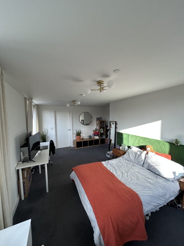 The room is the largest in the flat, with a double bed, walk in wardrobe and ensuite bathroom. Most of the furniture comes with the room (not shelving).