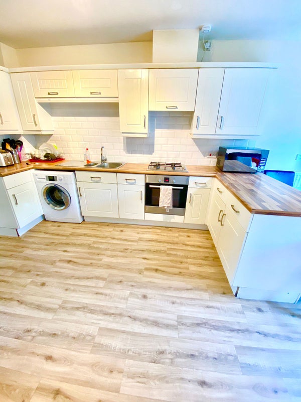 Kitchen and living room are fully furnished with garden out back, perfect for BBQs!