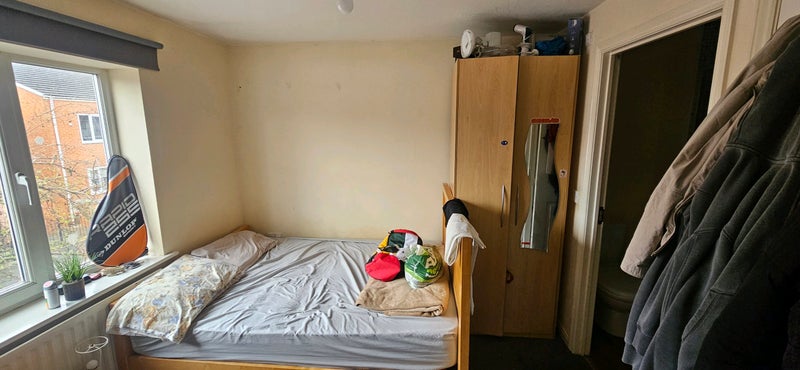 Spacious ensuite double bedroom available in a clean, quiet three-bedroom house. Fully furnished with bed, two wardrobes, bedside table & lamp, plus a large table and chair – ideal for work or study. Fantastic location with excellent transport links: close to the city centre, hospital, university, shops, and amenities. Buses every 10 mins and walking distance to the train station.